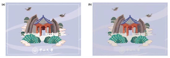 Finally, to demonstrate the superiority of our inverse design approach in real applications, we chose a painting, “Sun Yat-sen University-Xing Pavilion” by Lin Xiwang and Lan Tian from Sun Yat-sen University. The colors of all of the 500 × 354 pixels on the picture are extracted and inputted into the inverse ANN as the target colors, which are shown in Figure 6a. The corresponding geometry is produced by ANN according to the target colors, and we input these obtained geometric structures into a pretrained forward ANN for prediction. The designed painting colors are shown in Figure 6b. Our inverse ANN shows an excellent performance for extremely accurate silicon color inverse design. However, there are a few shortcomings that can be observed. If the target colors of some pixels are too dark, the structures’ inverse design is not accurate, because it is difficult to realize the color with an extremely small Y value by Si-structures. On the other hand, some pixels with an extremely high Y value are also difficult to be designed in reverse by Si-nanorods.