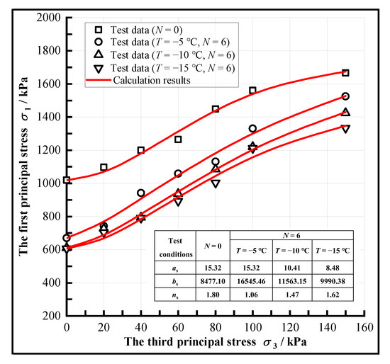 are the material parameters. Those parameters can be obtained through a calculation. The calculated curves for the relationship between σ1 and σ3 are shown in Figure 6.