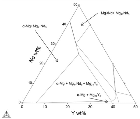 Calculated Mg-Y-Nd isothermal ternary phase diagram, T = 300 °C [,].