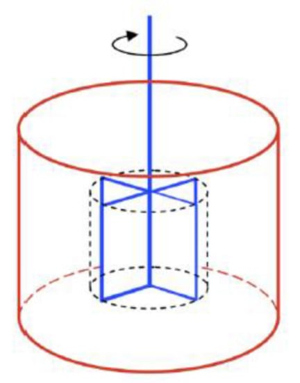 Figure 5 and Figure 6 show the equipment and possible evaluation of the results used in the experiment. The test equipment can perform two types of tests. First, the rotation speed is 0.025 rev/s, which is indeed a stress growth test that runs at a consistent moderate speed to build up torque and is measured as a function of time. The maximum torque measured during the test is used to calculate the static yield stress. Another type of test is a flow curve test to determine the dynamic yield stress and plastic viscosity. For the test method, after rotating the impeller at the maximum speed, the speed decreases, and measuring the number of torques is the basic part of the test process. It stores the measured torque and impeller speed in real-time, and the calculation of Bingham parameters is performed automatically. The main equation of the ICAR rheometer is as follows: