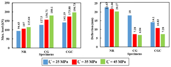 The effect of concrete compressive strength on the ultimate load capacity and corresponding deflection for the analyzed specimens.