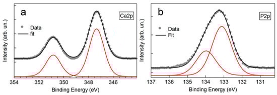 Representative XPS high-resolution spectra of (a) Ca2p and (b) P2p core regions of anodized niobium.