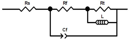 The equivalent circuit diagram: Rs represents the solution resistance; Cf and Rf are the capacitance of the corrosion layer and the resistance of the corrosion product layer, respectively; Rt stands the charge transfer resistance and L is the inductance of the adsorbed species.