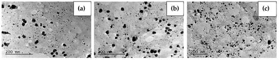 TEM images of the samples (a) Ag-144-20 °C, (b) Ag-144-30 °C and (c) Ag-144-40 °C.