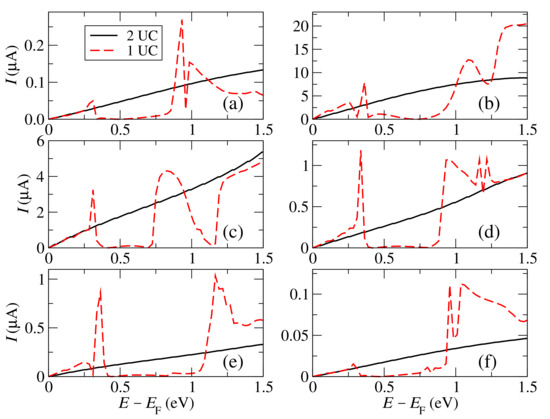 - Cheraghchi, H.; Esfarjani, K. Negative differential resistance in molecular junctions: Application to graphene ribbon junctions. Phys. Rev. B 2008, 78, 085123. [Google Scholar] [CrossRef] [Green Version]