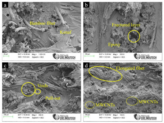 | (d) Laminate 4: Bamboo+Epoxy + MWCNT | 3363, 2924, 2857, 1641 (broad), 1591, 1505, 1467, 1242, 1180, 1018, 827, 822, 698. | Epoxy ring peak—915 cm−1 vanished |