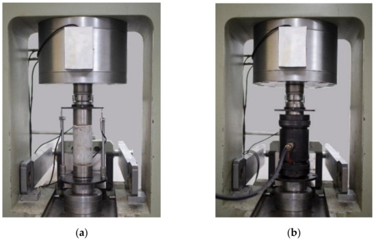 Test setup. (a) Uniaxial compression tests. (b) Triaxial compression tests.