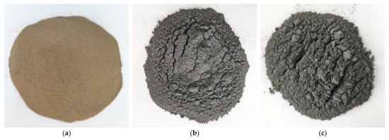 Digital images: (a) loess; (b) desulfurization ash; and (c) fly ash.