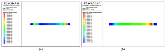 Stress and displacement cloud diagram on the shear surface. (a) Stress cloud diagram; and (b) displacement cloud diagram.