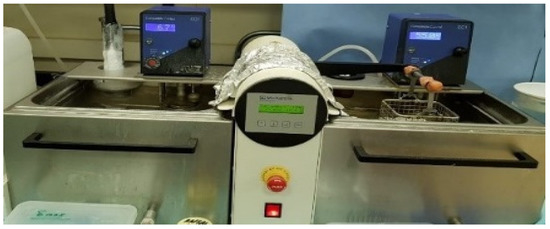 The specimens were then stored in water at 37 °C for 30 days, after which thermocycling from 5 °C to 55 °C for 3000 cycles using a dwell time of 30 s was carried out in a thermocycling unit (Model 1100, SD Mechatronik, Bayern, Germany) (Figure 2). This was performed to simulate normal stresses [12].