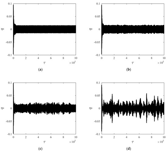 - Ding, H.; Yan, Q.Y.; Chen, L.Q. Chaotic Dynamics in The Forced Nonlinear Vibration of an Axially Accelerating Viscoelastic Beam. Acta Phys. Sin 2013, 62, 1–7. [Google Scholar] [CrossRef]