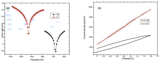 - The corrosion current density jcorr value for W, which is directly proportional to the corrosion rate, is lower than the value compared for C. This can be attributed to the surface defects on the sample C;