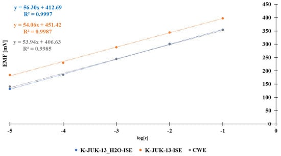 Table 2. Comparison of the potentiometric selectivity coefficients for proposed K-JUK-13_H2O-ISE, coated wire electrode (CWE) and K-OD-MWCNTs-ISE (with the same ion-selective membrane) (n = 3, α = 0.05).