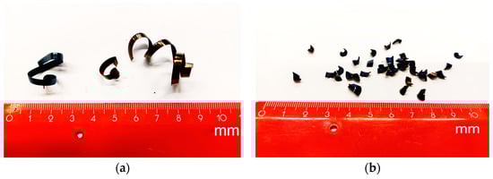 Scientists are interested in the chip, from the days of machining nesters, such as Merchant, Zorev, Asthakov, and others [30,31,32,33], who focused mainly on the description of chip formation by experimental and mathematical approaches, to the present, where attention is paid not only to mathematical methods and experimental approaches to cutting zone research but also to modelling and simulations of the resulting chip and chip deformations. A comprehensive approach to the evaluation of not only the cutting zone but also several other cutting process parameters such as cutting forces, wear, durability and service life, roughness, and quality of the machined surface is often seen, using state-of-the-art approaches, procedures, instruments, and software [34,35,36,37].