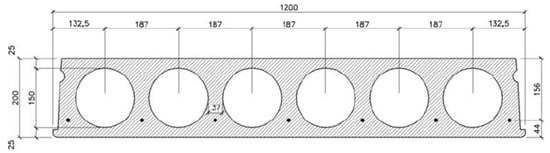 Layout and cross-section details of a typical pre-stressed concrete hollow core slab unit.
