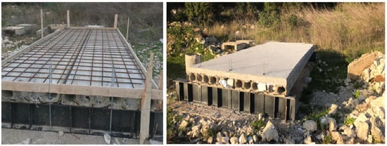 The topping slab is made of concrete with a 45 MPa compressive strength and includes steel reinforcement bars as illustrated in Figure 3.