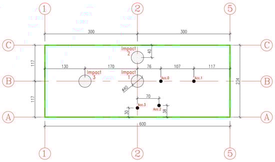 The hollow core slab was mounted by four electronic accelerometer fixed at different positions as shown in Figure 6. The choice of accelerometers’ locations is selected to be excluded from the impacted area to avoid any damage in this sensors which may generate nonrealistic readings. These sensors were attached to a data acquisition system to register readings during the impact
