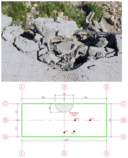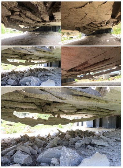 Several measurements have been made on the analyzed slab. We present in this paper the results related to the (i) damage analysis, (ii) dynamic behavior in terms of acceleration response, and damping ratio, (iii) shear strength, inertia force, and impact force grouped in Table 2.