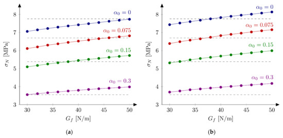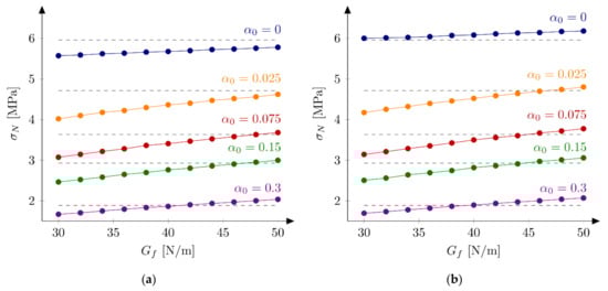Table 4. Calculated nominal strengths σ N F E M for exponential (sets S10–S12) and rational Bezier (sets S13–S14) softening curves.