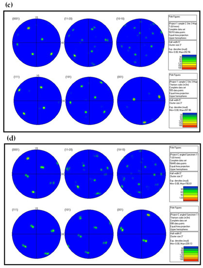 - Yang, J.; Yu, H.; Wang, Z.; Zeng, X. Effect of crystallographic orientation on mechanical anisotropy of selective laser melted Ti-6Al-4V alloy. Mater. Charact. 2017, 127, 137–145. [Google Scholar] [CrossRef]