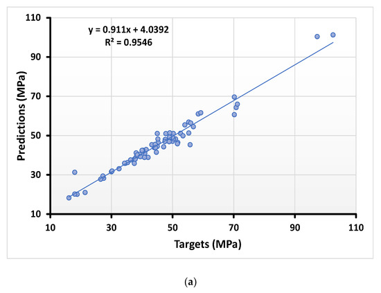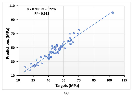As demonstrated by the data, the ML-based strategy for forecasting the mechanical characteristics of concrete is clearly better than traditional mechanics-based methods. The advantages are as follows: (1) ML does not at all require complex mechanics/theoretical equations but instead finds the mapping between the input and output utilizing numerical and/or computer knowledge of science, making it very accessible to the readers; (2) Unlike most empirical models, which typically consider a limited number of variables when deriving the formula, ML can consider an infinite number of variables; (3) Meanwhile, inherent uncertainties [55] can be incorporated into the training process; and (4) The precision, reliability, and robustness of machine learning-based models are significantly higher than those of traditional models: they can provide objective and accurate results in a matter of seconds.