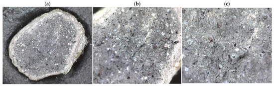 The effectiveness of the sintering process was assessed by evaluating the microstructure of the obtained aggregates. A photograph of the fracture of the aggregate grain after sintering is shown in Figure 10 (Microscope: Olympus BX43). Exemplary micrographs of granules before and after sintering, taken with a scanning electron microscope (FEI Quanta 200FEG, FEI, Hillsboro, OR, USA), are shown in Figure 11.