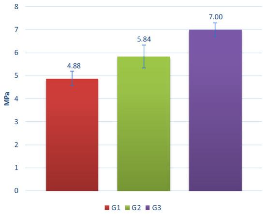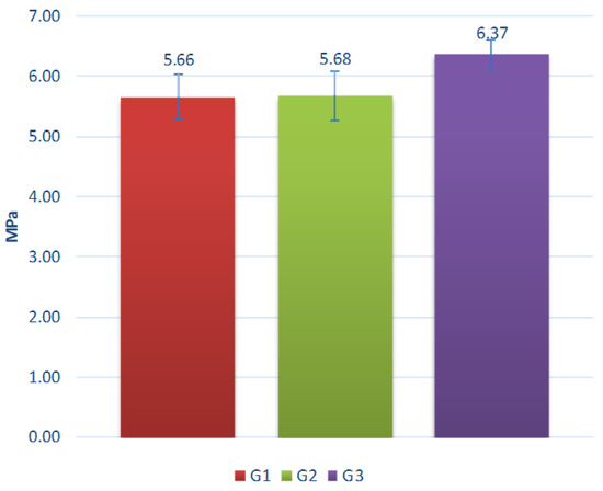 Comparing the results of water absorption tests, it can be stated that the highest water absorption was observed for aggregate G2. It contained an average amount (40% and 40% respectively) of the coal sludge and clay. This indicates that a dominant porosity type in the aggregates is a closed porosity, as supported by the lack of a correlation between the bulk density (Table 4) and the water absorption (Figure 14). The results of crushing resistance of aggregates after cyclic freezing indicate that the tested materials have a relatively good resistance to freezing at high moisture content, with the reduction of parameters being 4%, 6%, and 15% for G1, G2, and G3 respectively. The clay, which is included in 50% in the G3 composition, probably forms some brittle phase within the aggregate during sintering process and the phase is conducive to the occurrence of microcracks during cyclic freezing. The microcracks deteriorate the strength of the material and the increasing volume of clay increases the deterioration. Such a brittle phase may be mullite (one of the main phases occurring in porcelain), produced during sintering compositions containing clay [38].