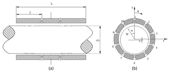 Schematic diagram of hybrid air bearings (a) axial direction, (b) circumferential direction.