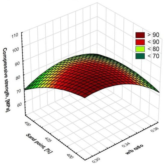 3.1. ANOVA—Determination of the Effect of Composition on the Compressive Strength of HPSCC