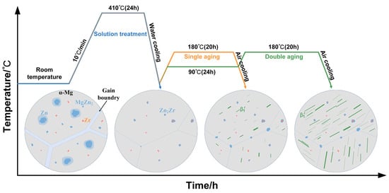 Schematic illustration of the microstructure evolution of LPBF ZK60 Mg alloy during different heat treatments. Reprinted with permission from ref. [83]. Copyright 2022 Elsevier.
