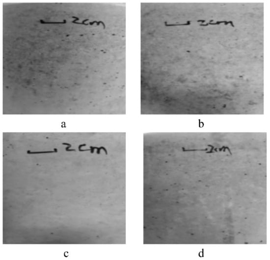 Concrete appearance under composite mixing of chemical admixture (a) without the water reducer and air-entraining agent; (b) only with the air-entraining agent; (c) with both the water-reducing agent and the air-entraining agent; (d) only with the water reducer.