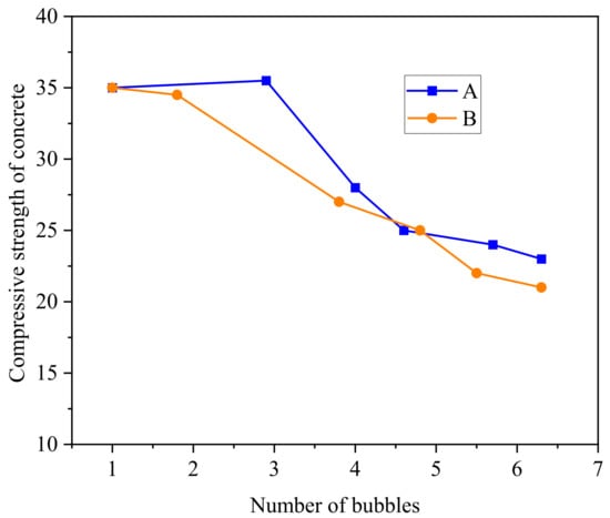The stability of concrete bubbles is dynamically balanced. Nonetheless, when the degree of bubble deformation causes the bubble film to rupture and lose its elastic properties, bubble will lose stability and rupture and finally exist in the interior and surface of the hardened concrete in the form of open or closed pores. There are three main reasons for the instability and rupturing of bubbles [40]: coalescence, liquid film drainage, and coarsening.