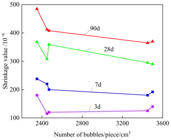 5.2. Effect of Bubble Content on Concrete Compressive Strength, Splitting Tensile Strength, and Drying Shrinkage