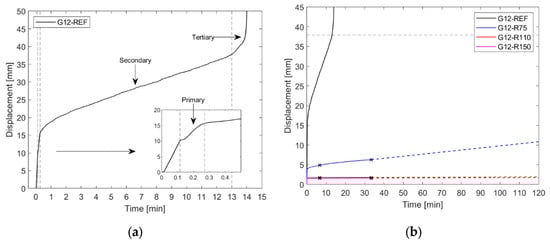 | Test Series | Constant Force (kN) | Instantaneous Displacement (mm) | Displacement Rate (mm/min) | Estimated Time to Failure (h) |