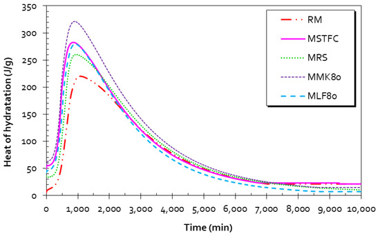 - Snelson, D.G.; Wild, S.; O’Farrell, M. Heat of hydration of Portland Cement–Metakaolin–Fly ash (PC–MK–PFA) blends. Cem. Concr. Res. 2008, 38, 832–840. [Google Scholar] [CrossRef]