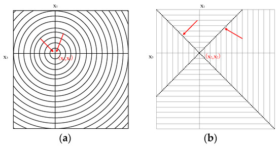 The contour lines of L2 and L∞ in subspace S2 are shown in Figure 10, and the minimum value in the space S2 is located at the origin (x2, x2) when x2 takes a fixed value.