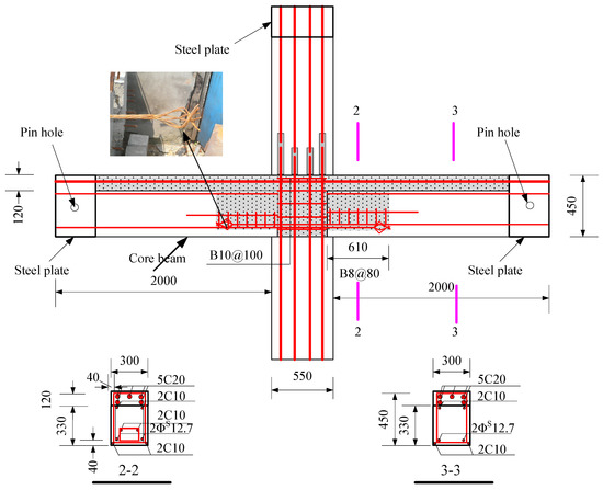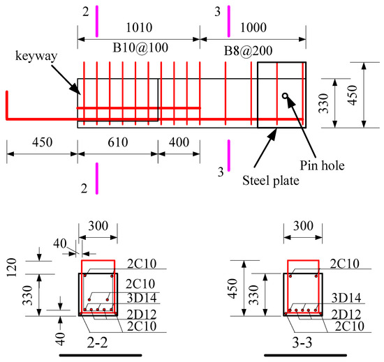 The connection design was improved based on the reference by Yu et al. [23]. Through the research, it was found that the precast joints lost their working ability because the key groove at the bottom of the precast beam was crushed in advance. Therefore, the two precast connections tested in this paper were designed as a core beam inside the keyway to prevent the concrete from being crushed.