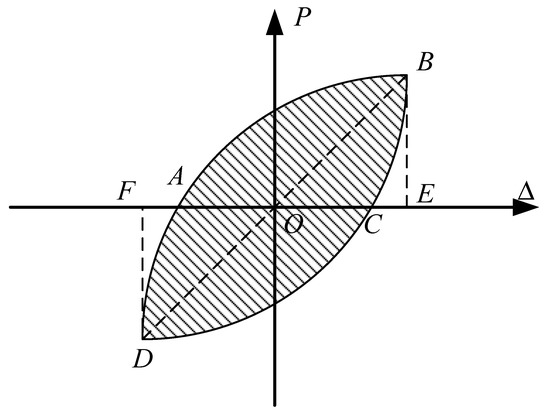 The equivalent viscous damping coefficient is an important indicator for measuring the energy absorption capacity of structures for earthquake resistance [28]. The calculation method is shown in Figure 14 and Equation (1).