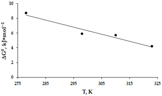 Although the changes in the standard enthalpy and standard entropy during the release of doxorubicin are almost independent of temperature in the range of 278 K–323 K, the change in the standard Gibbs energy of doxorubicin release decreased linearly with the growth of temperature (Figure 11).