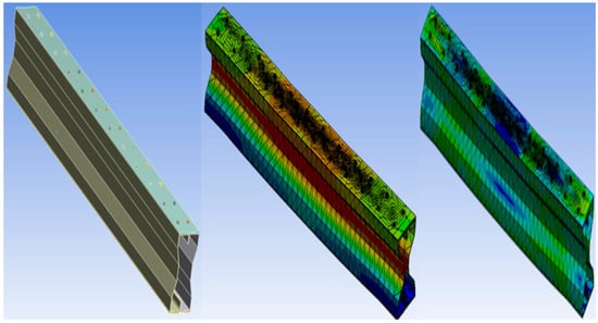 The buckling shape and stress distribution for all three specimens are shown in the following figures: (a) modeling of the specimen, (b) buckling mode of the specimen, and (c) stress distribution of the section.