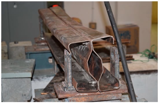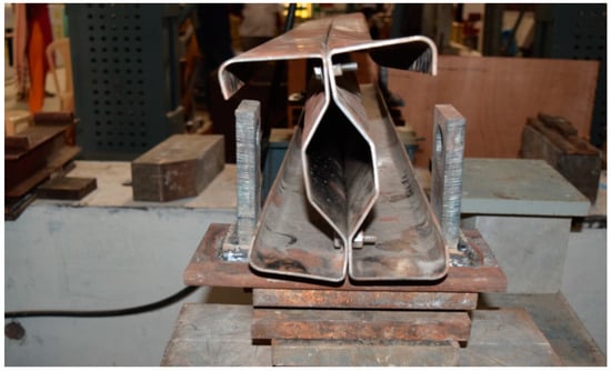 - Pastor, M.M.; Roure, F. Open cross-section beams under pure bending I. Experimental investigations. Thin-Walled Struct. 2008, 46, 476–483. [Google Scholar] [CrossRef]