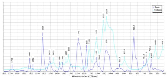 IR spectra for resin and cellulose.