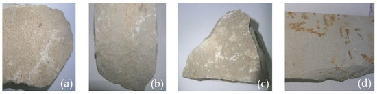 (a) S1: sample series dislodged from the original 19th century wall of The Church of The Holy Archangels Michael and Gabriel; (b) S2: sample series extracted from Egoreni stone quarry; (c) S3: sample series extracted from Poiana Deleni stone quarry; (d) S4: sample series extracted from Vama stone quarry.