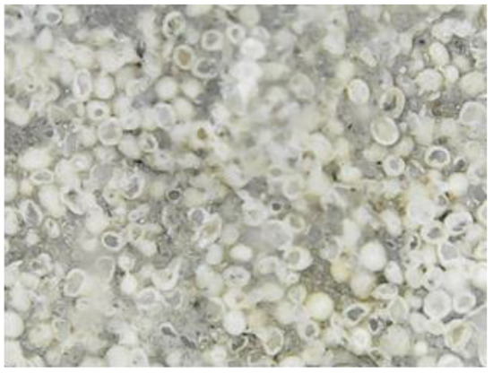 All samples analyzed in this study were carbonate rocks belonging to the class of sedimentary rocks. The benchmark samples from the S1 series dislodged from the original wall of Frumoasa monastery were a variety of limestone and oolite and composed of grains of calcium carbonate (calcite) with dimensions ranging from 3 to 80 μm. The structure of these samples was weakened due to water infiltration. As a consequence, the minerals expanded in the presence of water and the permeability was high. Based on the outcomes of the microscopical and XRF analyses, the composition of the S3 samples (stone from Poiana Deleni stone quarry) was the closest to the composition of the benchmark S1 samples.