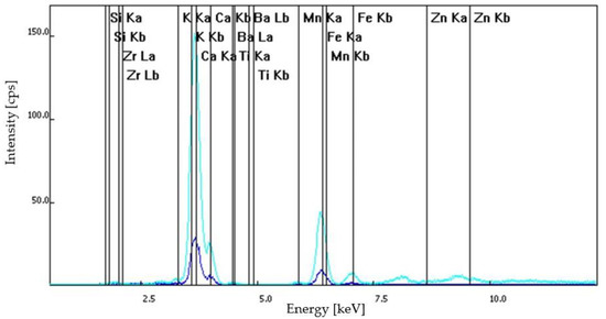 The identification and analysis of the major and trace elements by XRF spectroscopy was possible due to the characteristic behavior of atoms when they interact with radiation [20,21]. When materials are excited by X-rays (high-energy and very short wavelength radiation), they can be ionized.