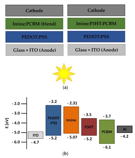 48. Iwan, A.; Boharewicz, B.; Tazbir, I.; Malinowski, M.; Filapek, M.; Kłąb, T.; Luszczynska, B.; Glowacki, I.; Korona, K.P.; Kaminska, M. New environmentally friendly polyazomethines with thiophene rings for polymer solar cells. Sol. Energy 2015, 117, 246–259. [Google Scholar] [CrossRef]