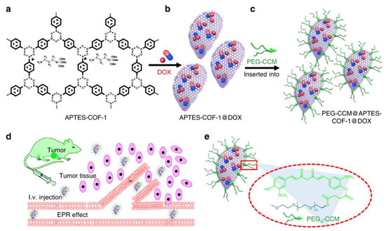 - Zhang, G.; Li, X.; Liao, Q.; Liu, Y.; Xi, K.; Huang, W.; Jia, X. Water-Dispersible PEG-Curcumin/Amine-Functionalized Covalent Organic Framework Nanocomposites as Smart Carriers for in Vivo Drug Delivery. Nat. Commun. 2018, 9, 2785. [Google Scholar] [CrossRef]