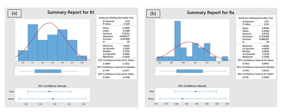 Statistical validation of response characteristics: (a) Kt, and (b) Ra.