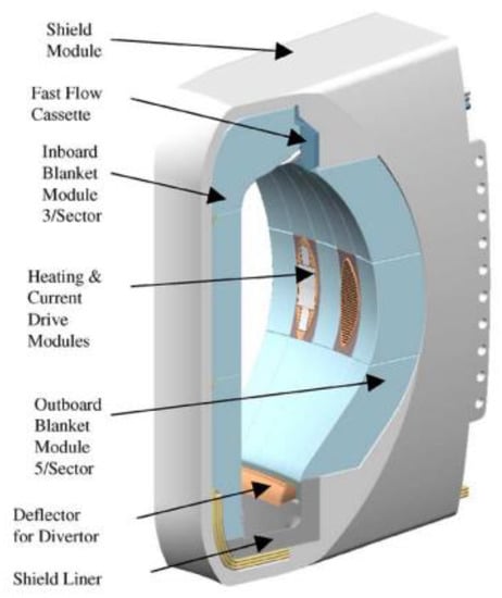 - Elio, F.; Ioki, K.; Yamada, M.; Strebkov, Y.; Daenner, W.; Akiba, M. Design and R&D Progress of Blanket Attachments. Fusion Eng. Des. 2003, 69, 321–326. [Google Scholar] [CrossRef]