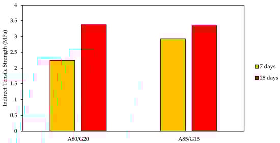 - For the results of the indirect tensile strength of the A80/G20 mixture, the percentage increase was about 49.7% for the 7 to 28 day curing period. The growth percentage of the A85/G15 mixture increased by 14% during the 7 to 28-day curing period.